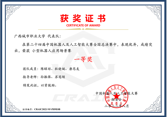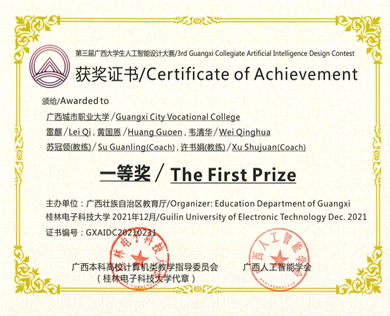 近两年,本专业教师曾指导学生参加“西门子杯”中国智能制造挑战赛、广西大学生电子设计竞赛、广西职业院校技能大赛、广西青少年科技运动会等各级各类竞赛获奖共计12项,其中国家级一等奖1项,三等奖3项,省级一等奖3项,二等奖2项,三等奖3项。